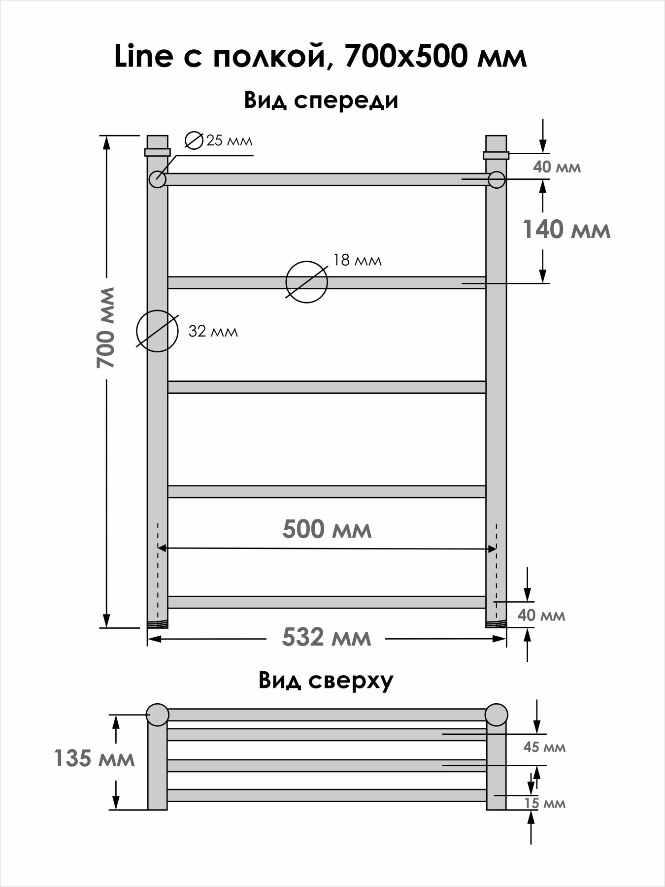 Стильную полированную поверхность изделию обеспечивает этап электрохимическая полировка. Изделие с небольшим количеством перекладин, но со своей основной задачей справляется: сушит текстильные изделия, предотвращает повышенную влажность и появление плесени в помещении.
