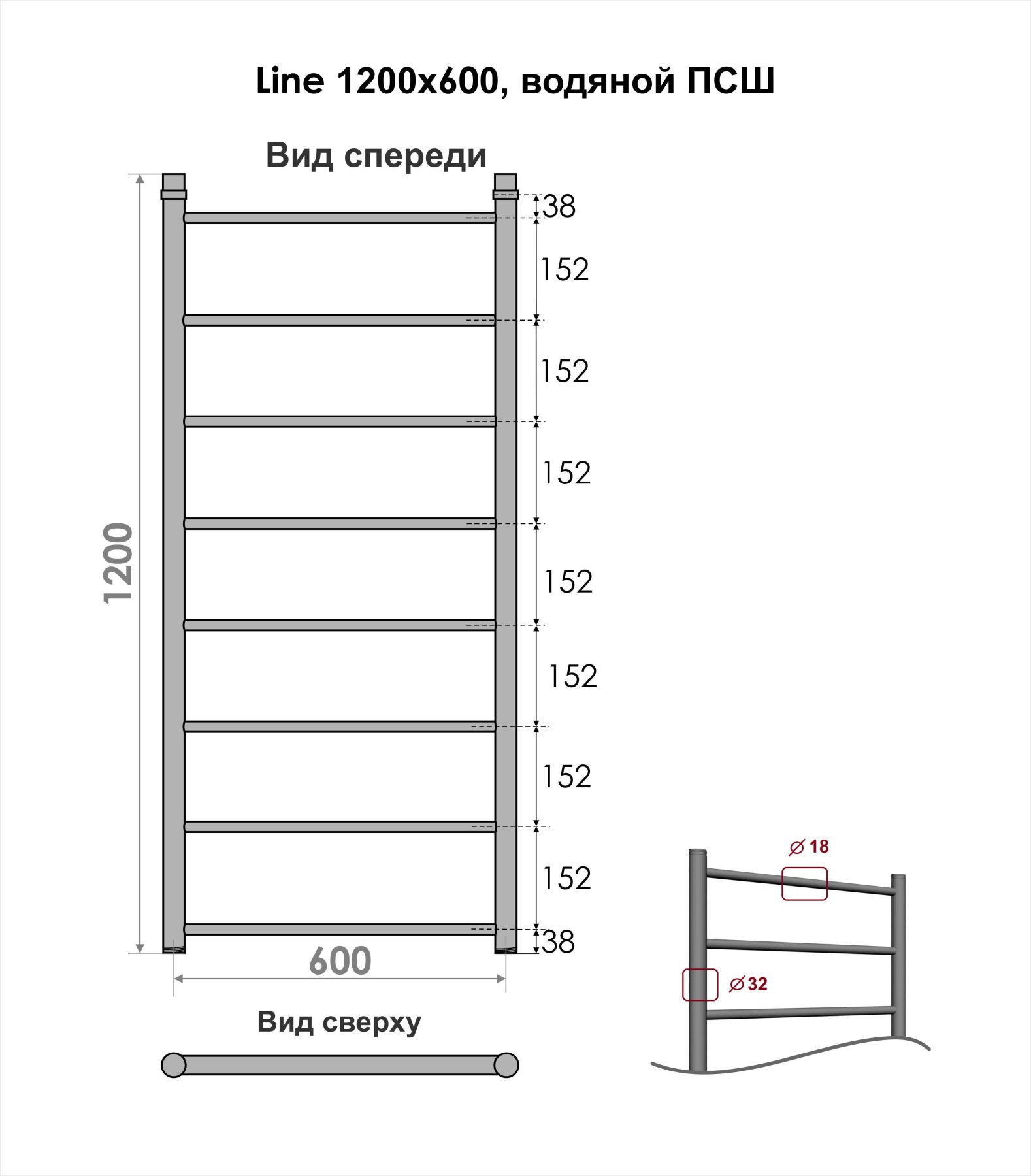 Водяной полотенцесушитель серии «Лесенка» Line имеет большое количество перекладин, что удобно для сушки большого количества текстильных изделий.