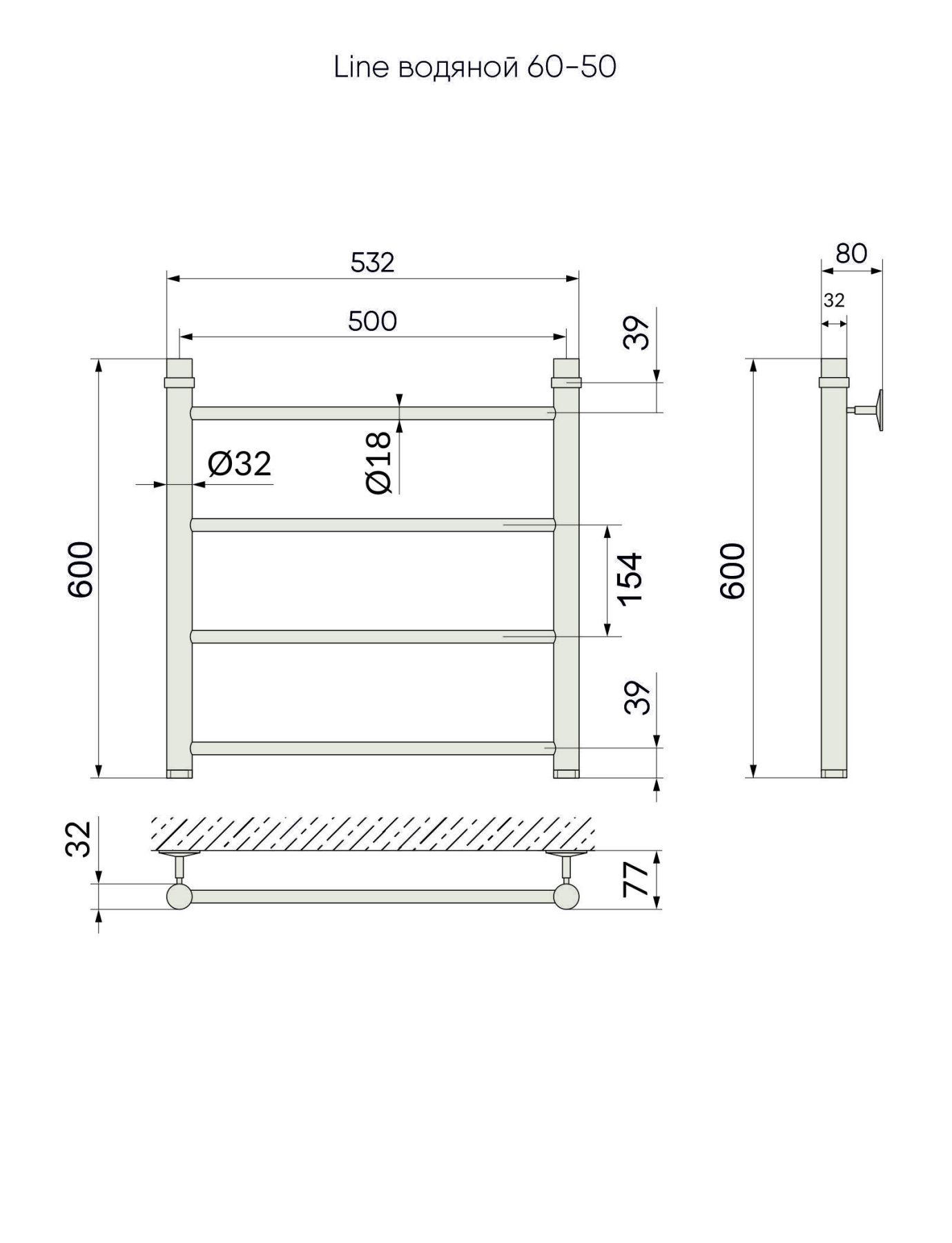 Водяной полотенцесушитель серии «Лесенка» Line. Простой, но стильный, изготовлен из высококачественной нержавеющей стали. Идеально сочетается с золотой сантехникой или интерьером в классическом стиле.
