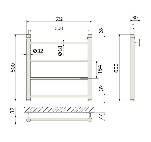 Водяной полотенцесушитель серии «Лесенка» Line. Простой, но стильный, изготовлен из высококачественной нержавеющей стали. Идеально сочетается с золотой сантехникой или интерьером в классическом стиле.