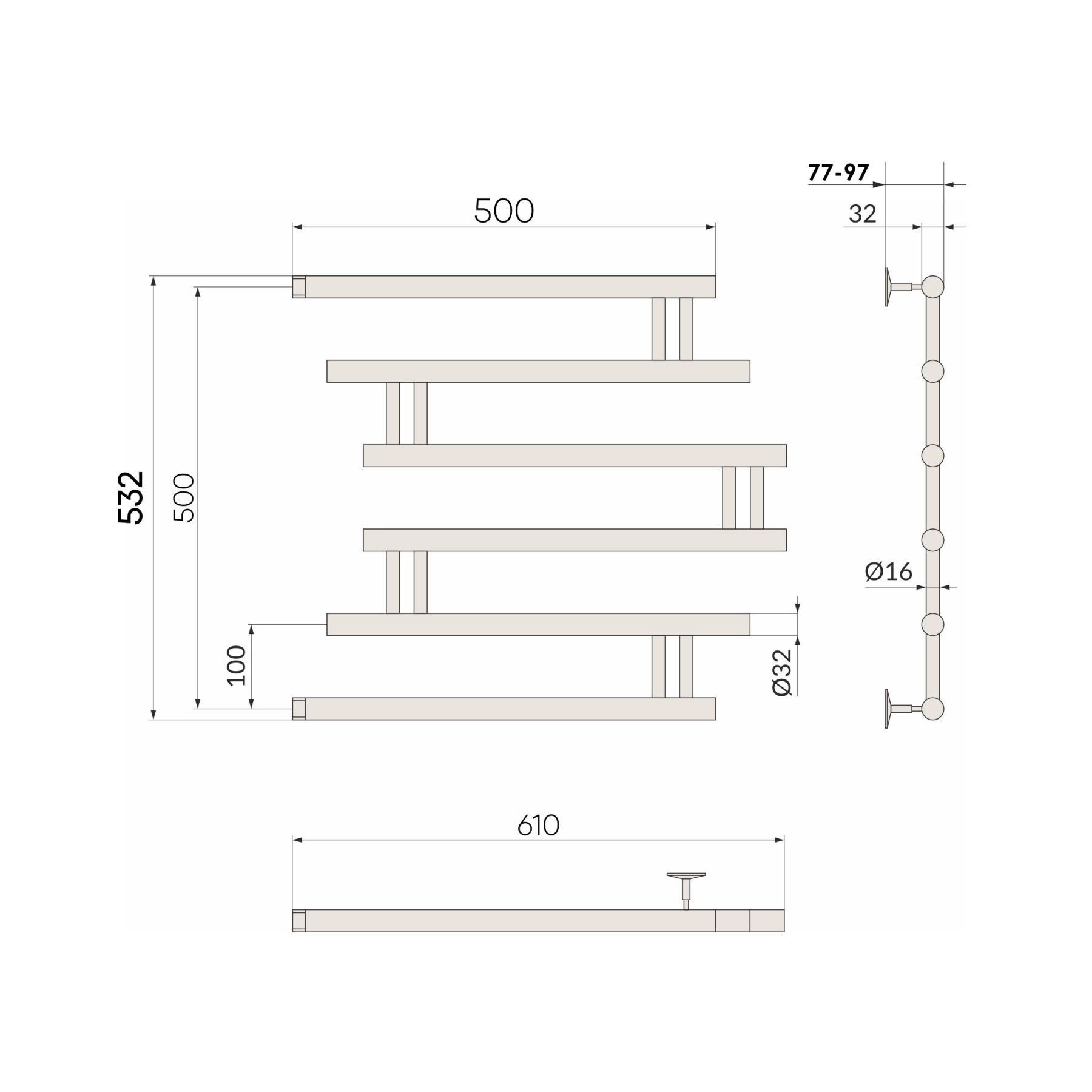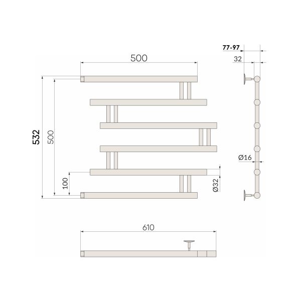 Полотенцесушители водные indigo изготавливаются из нержавеющей стали и не подвергаются воздействию ржавчины и коррозии. Имеет боковое подключение.