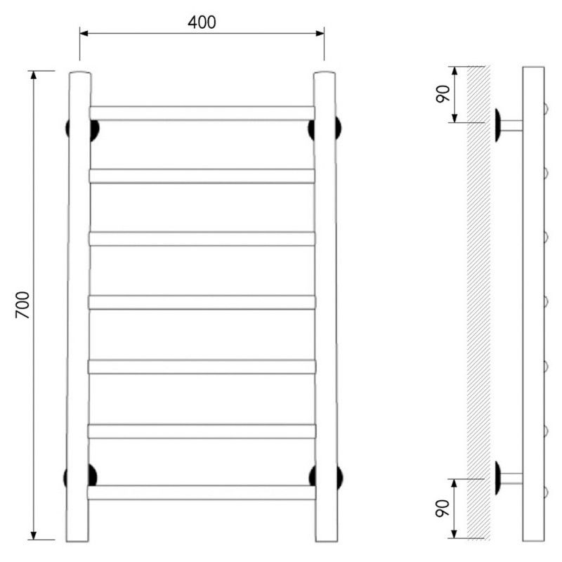 Полотенцесушитель изготовлен из нержавеющей стали — износостойкого и не подверженного коррозии материала, легко выдерживающего агрессивную среду систем отопления.
