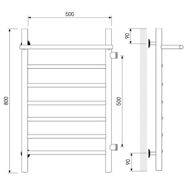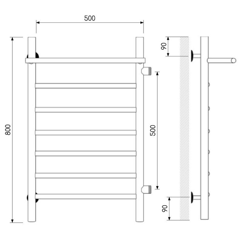 Полотенцесушитель водяной Laris Классик 73208019 правый с полкой П7 50x80см хром