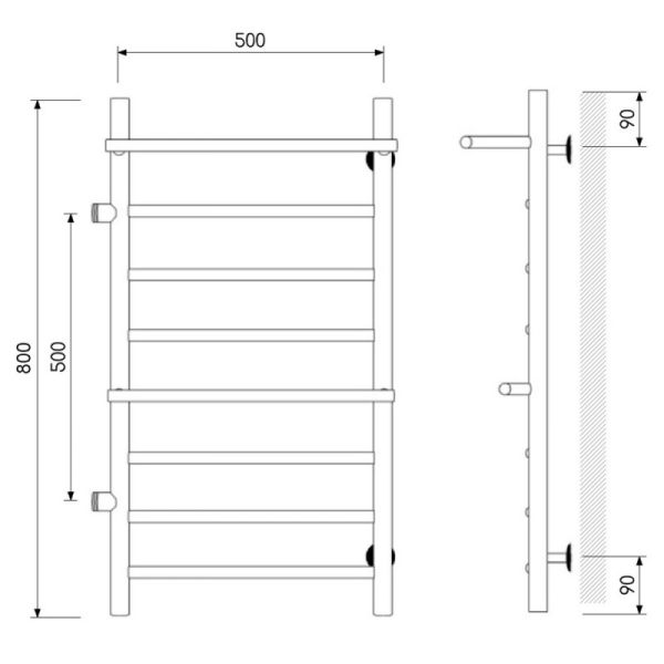 Полотенцесушитель водяной Laris Лавина 73208021 левый с полками П9 50x80см хром
