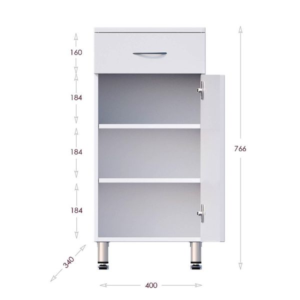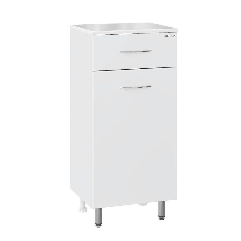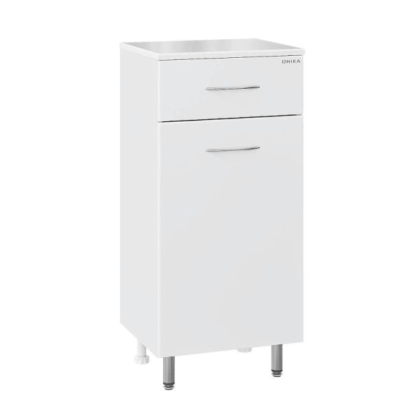 Напольный полупенал для ванной комнаты Onika КАПРИЗ 40, благодаря простому минималистичному дизайну, белой глянцевой поверхности, подойдет под любой интерьер ванной комнаты.