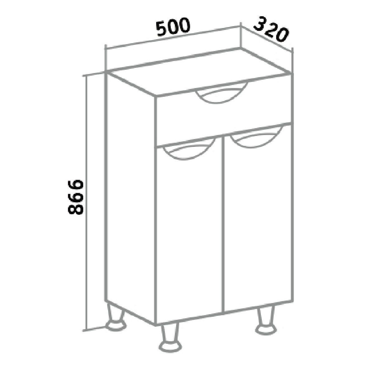 Тумба в ванную (полупенал) с одним выдвижным ящиком и двумя распашными дверками, за которыми одна встроенная полка. Петли со встроенным доводчиком, ручки врезные - 3шт, ножки хром - 2шт, ножки пластик -2шт.