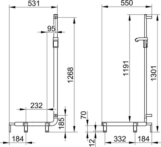 Поручень Keuco AXESS 35008016602 хромKEUCO AXESS Поручень вдоль стены и штанга для душа, левый, 550/531/1301 мм, хром