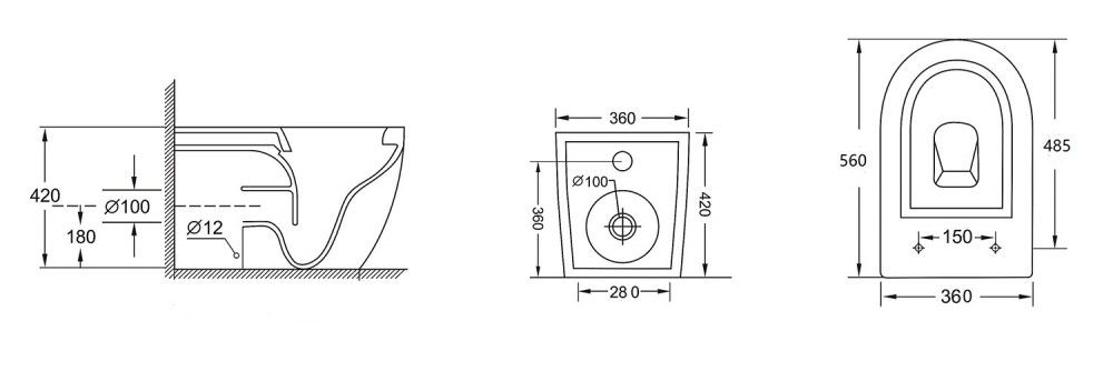• Прилегание унитаза к стене: