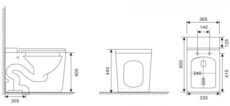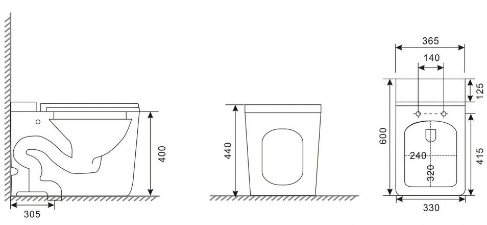 • Прилегание унитаза к стене: