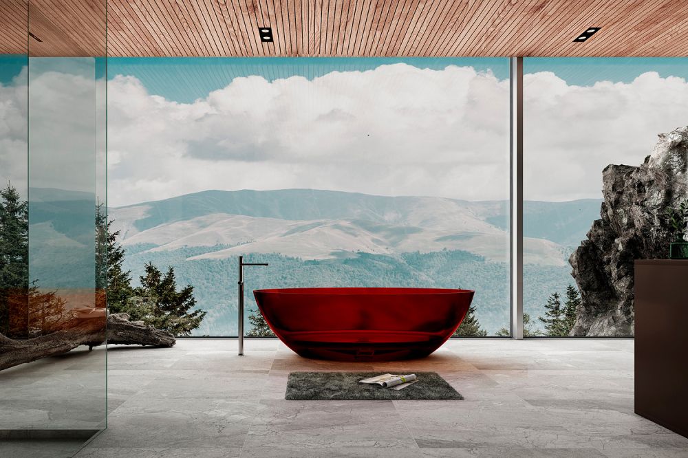 Прозрачная ванна ABBER Kristall AT9702Rubin из полиэфирной смолы 180x85см красный купить