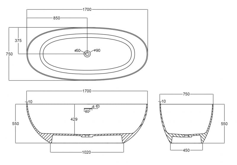 Стандартные размеры, см:170x75