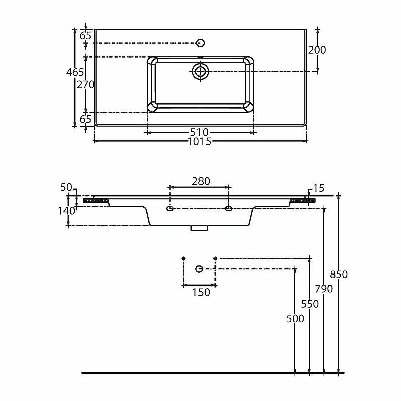 • Отверстия под смеситель: