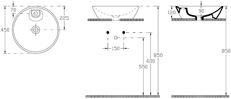 Монтаж: накладная на мебель (на столешницу).