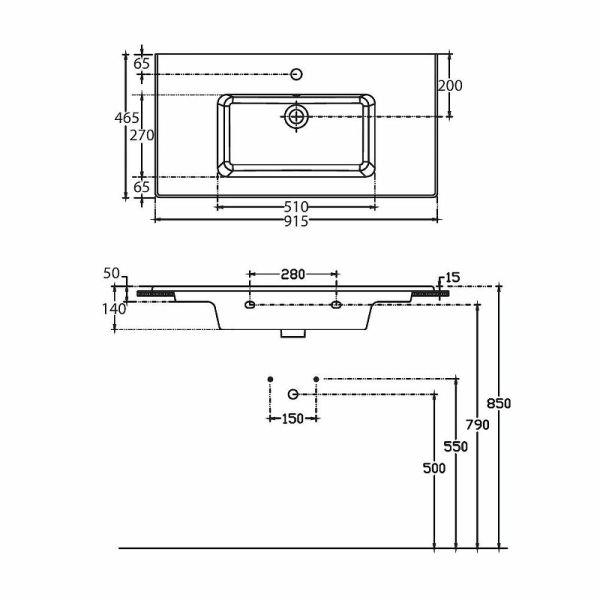 • Отверстия под смеситель: