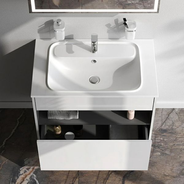 Универсальный монтаж — устанавливается на тумбу стандартного размера с центральным отверстием под смеситель