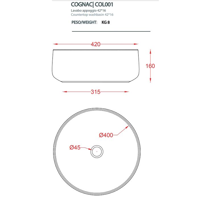 Раковина ArtCeram Cognac COL001 17 00 черная 42 см купить