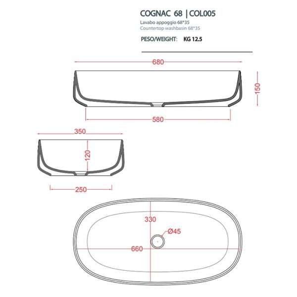 Раковина ArtCeram Cognac COL005 05 00 белая 68 смArtCeram Cognac COL005 05 00 Раковина накладная на 68 см. Размер 68х35х15 см. Без перелива и плоскости под смеситель. Монтаж накладной на столешницу. Цвет белый матовый.