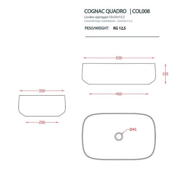 Раковина ArtCeram Cognac COL008 16 00 blu zaffiro 55 смArtceram Cognac Раковина 55x35 см, без отв., накладная Quadro, цвет: blu zaffiro