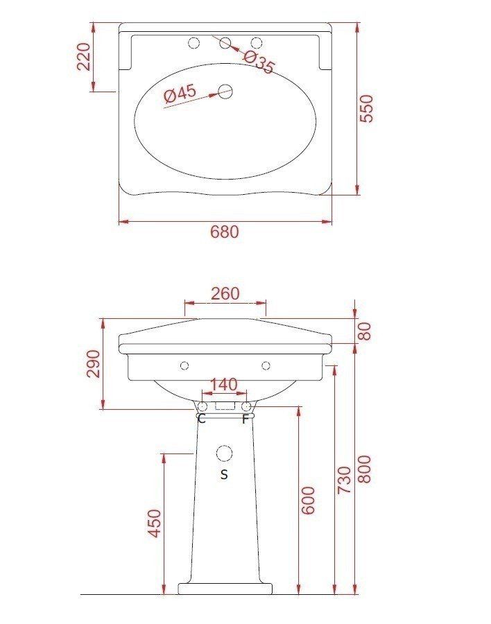 • Отверстия под смеситель: