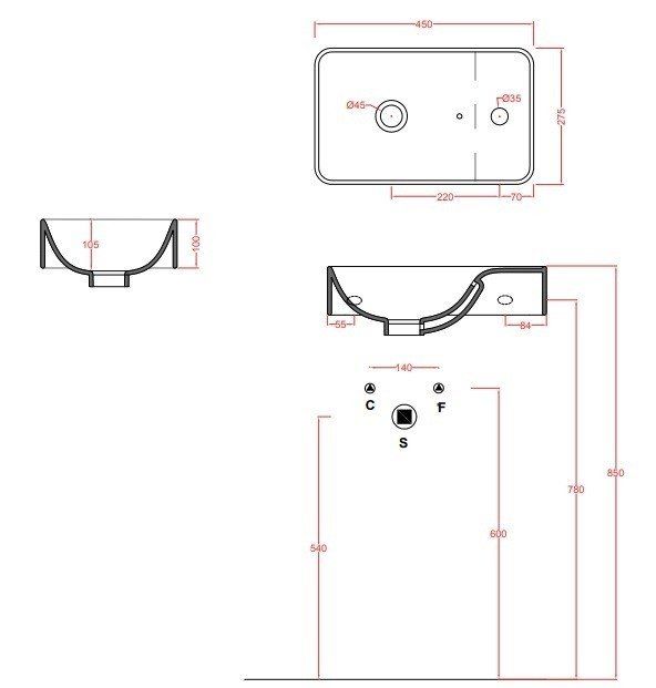 • Отверстия под смеситель: