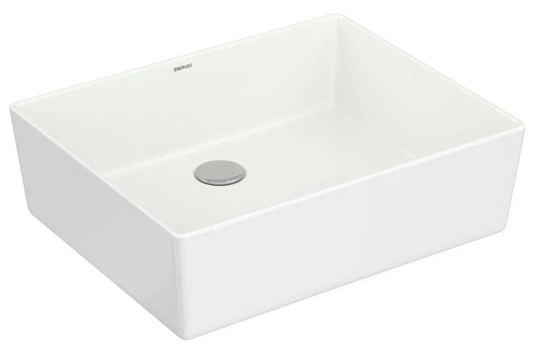 Накладная раковина из санфарфора Berges Ego размером 50х40х15 см.Прямоугольной формы, без отверстия под смеситель, глянцевая белая.Гарантия 10 лет*Донный клапан необходимо приобрести отдельно