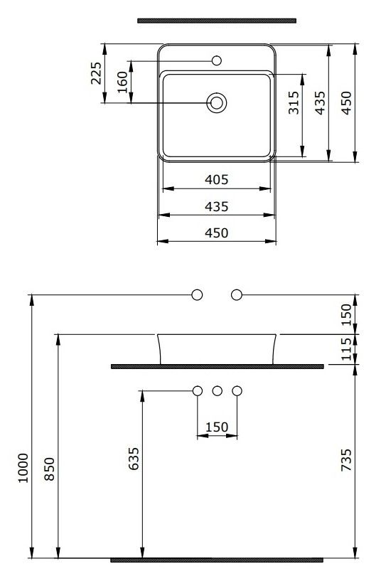 Отверстия под смеситель:1