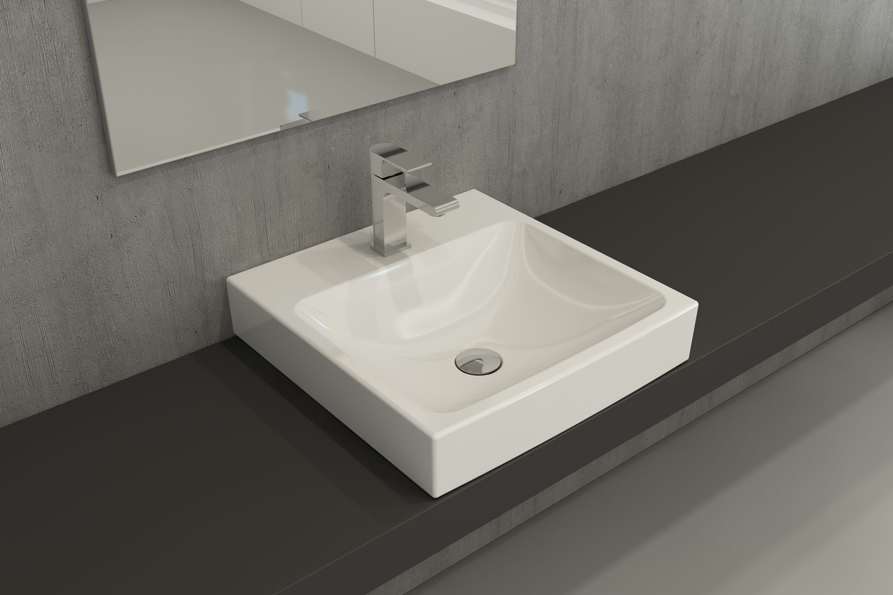 Подвесная раковина из санфарфора Berges Strati размером 48,5х48х16,5 см.Прямоугольной формы, с отверстием под смеситель, глянцевая белая.Встроенный слив-перелив оформлен декоративной накладкой в цвете хром.Крепеж в комплекте.Подходит для использования на столешнице.Гарантия 10лет*Донный клапан необходимо приобрести отдельно