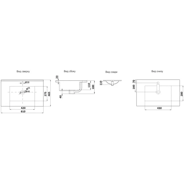 Раковина Brevita 9060MMB 61x46.5 см накладная черный матовый Подробнее