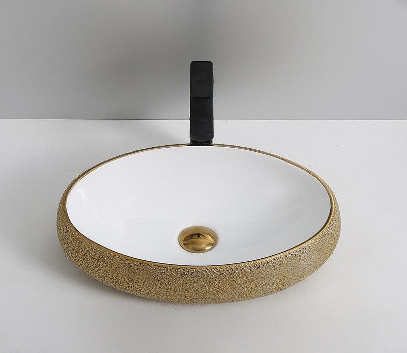 Раковина CeramaLux 433J бело-золотая 49 смПодходит для ванных комнат различной планировки в современном стиле и отличается стильной и изящной формой.Материал: санфаянс.В комплекте поставки: раковина.