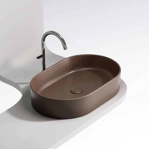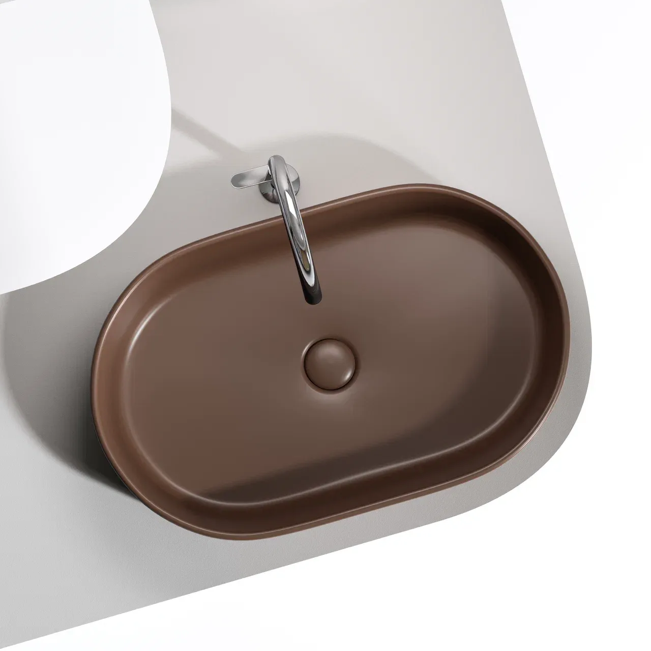 Умывальник чаша накладная овальная (цвет Темно-Коричневый Матовый) Element 608*385*122мм