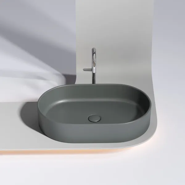 Умывальник чаша накладная овальная (цвет Темный Антрацит Матовый) Element 608*385*122мм