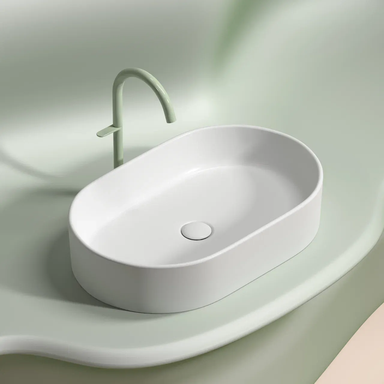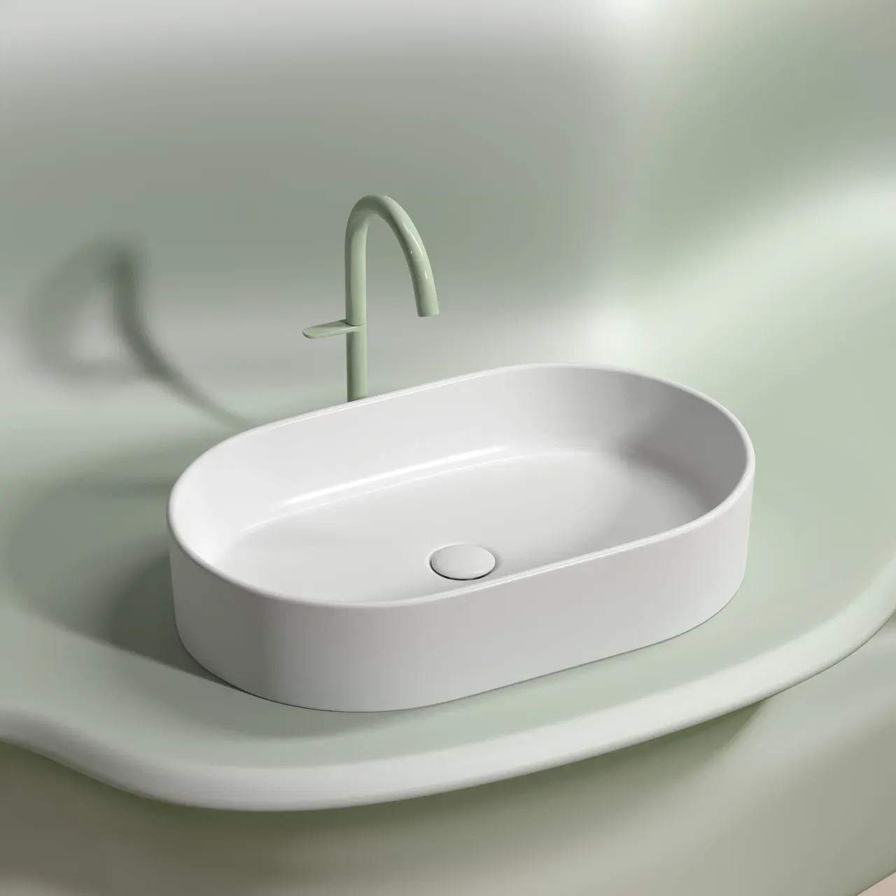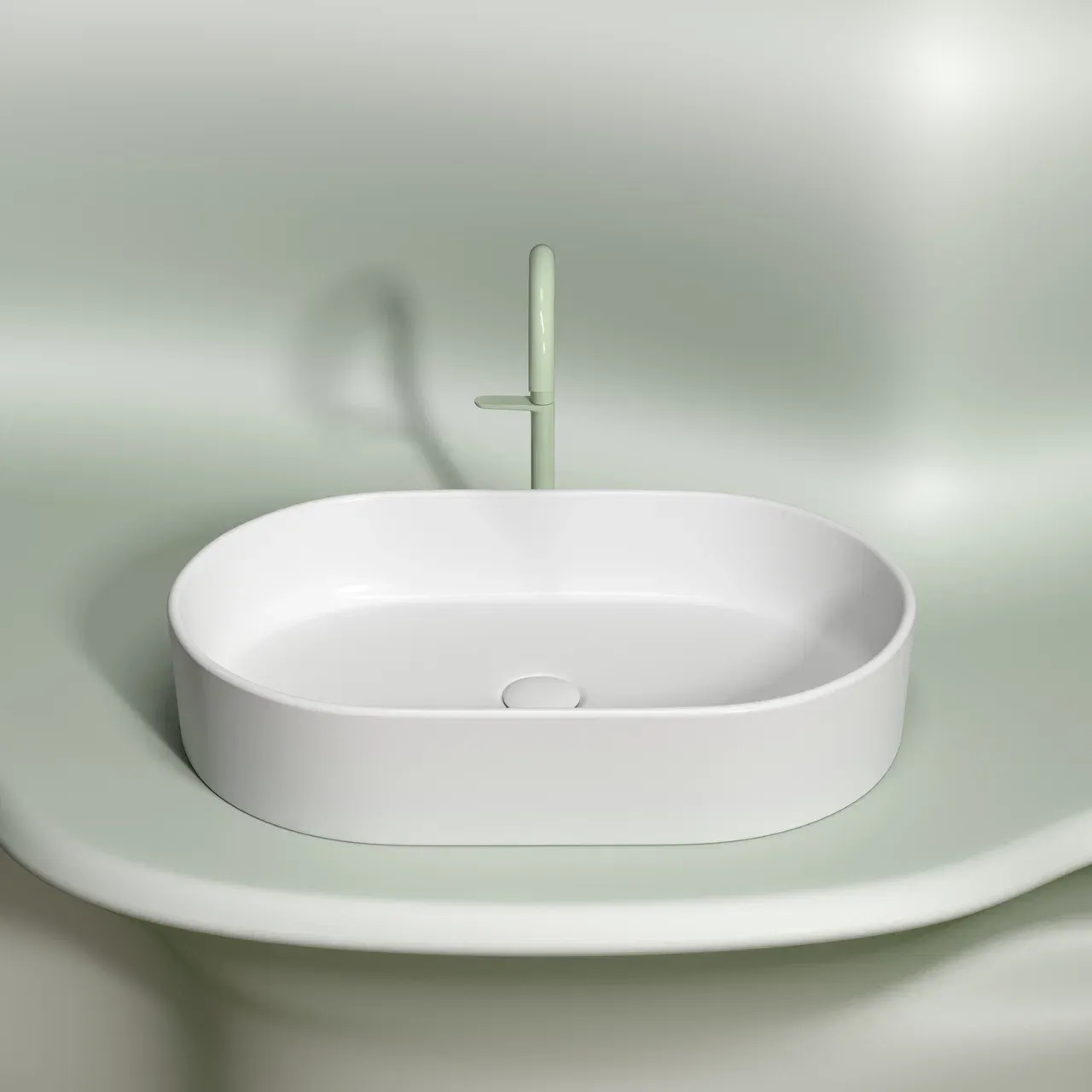 Умывальник чаша накладная овальная (цвет Белый Матовый) Element 608*385*122мм