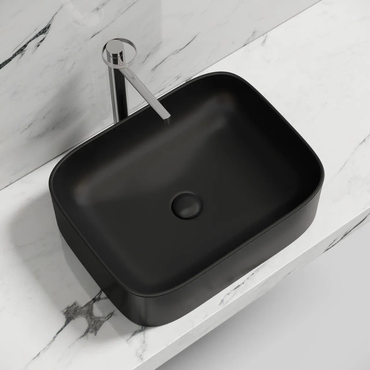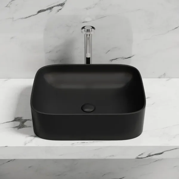 Умывальник чаша накладная прямоугольная (цвет Чёрный Матовый) Element 505*380*122мм