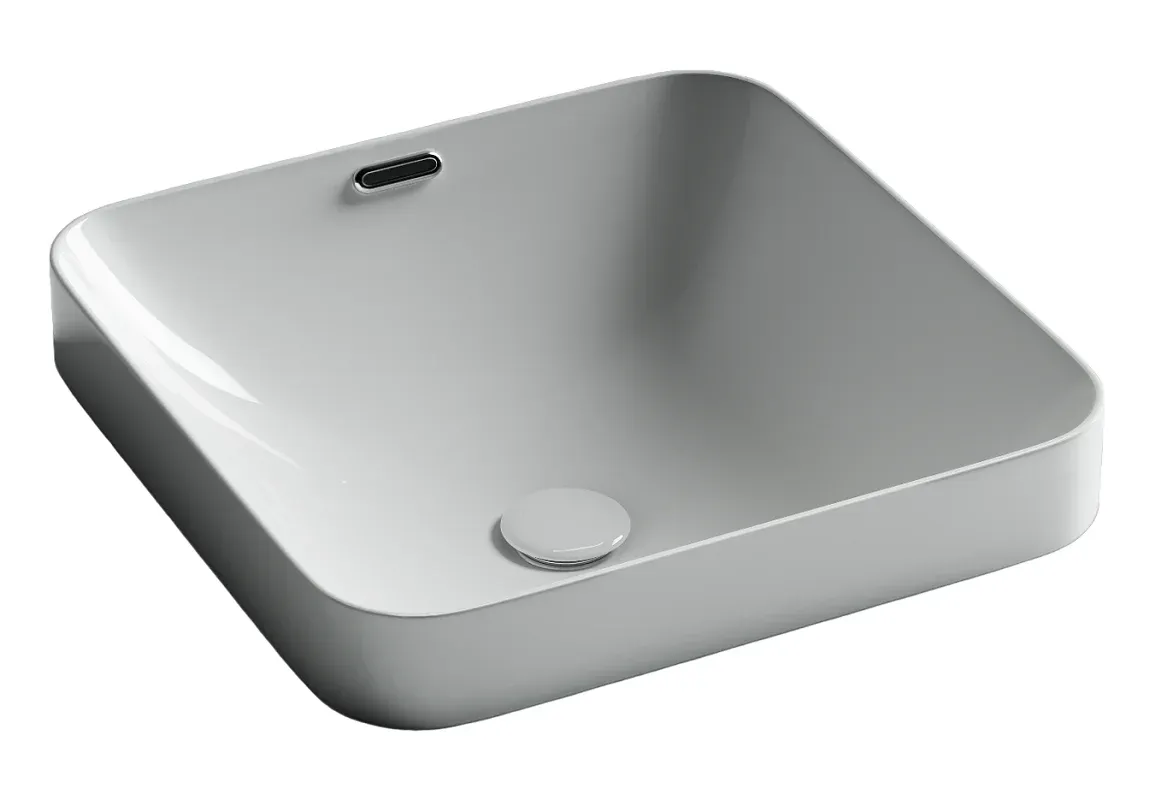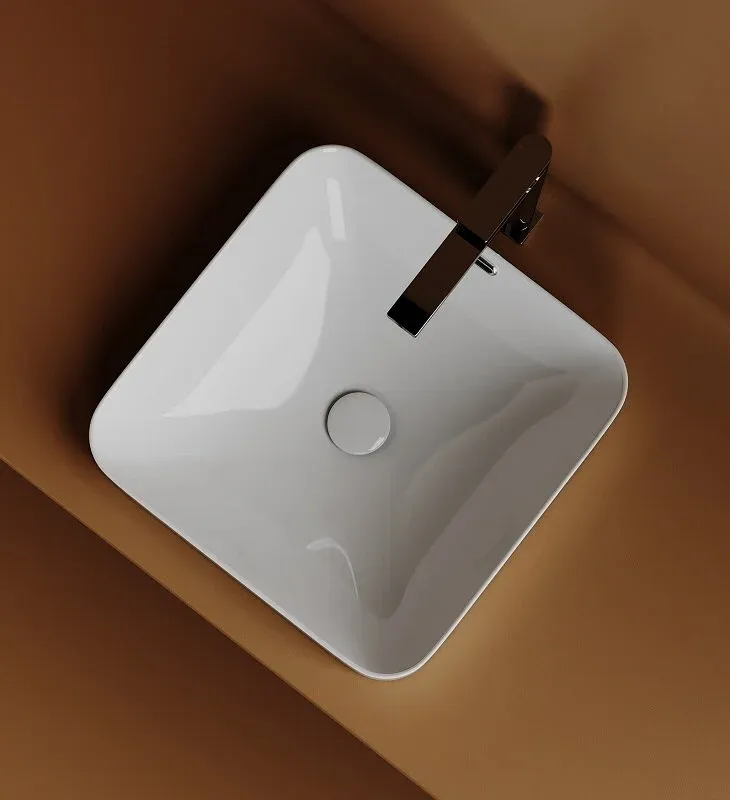Раковина встраиваемая сверху CERAMICANOVA Element, с отверстием слива - перелива, квадратной формы 438x438x172 мм, с шаблоном для установки, цвет белый, арт. CN6077