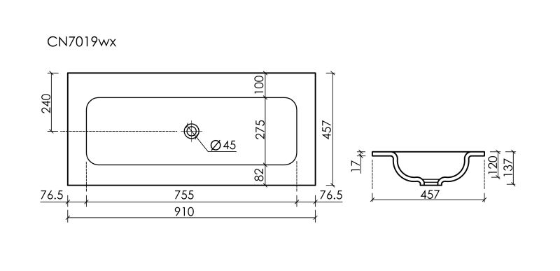 • Коллекция Grace. Размер 910x457x137мм, без отверстия под смеситель.