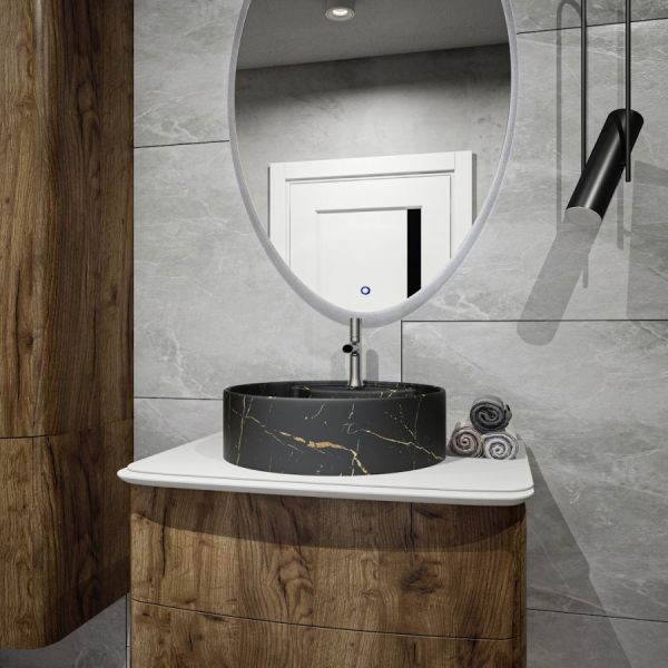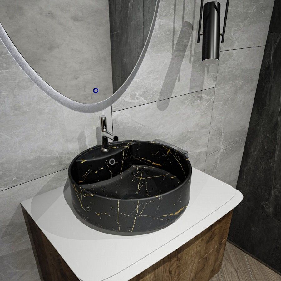 Раковина чаша Maretti EA13NS44-560MR, черный мрамор. Материал: санфарфор. Размер: 40x40x14. Форма: круглая.Преимущества:- гарантия на изделие – 10 лет;- произведён из санфарфора высшего качества;- антибактериальное водоотталкивающее покрытие чаши;- материал не выцветает со временем и не теряет потребительских свойств;- санфарфор надёжен, устойчив к появлению сколов и царапин.