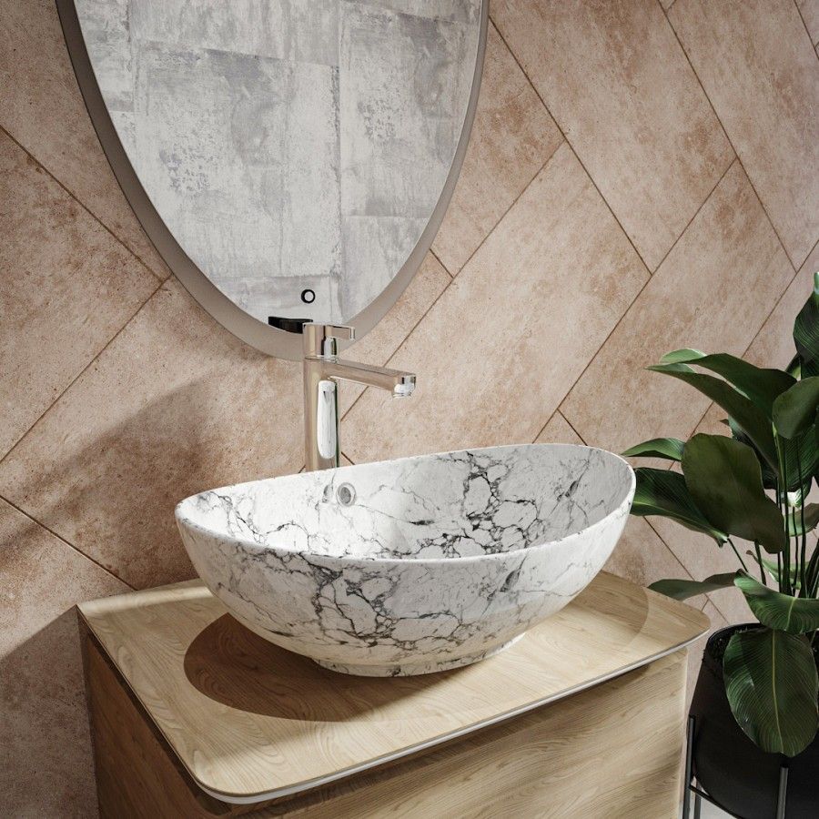 Раковина чаша Maretti EN13NS48-740MR, белый мрамор. Материал: санфарфор. Размер: 59x39x19,5. Форма: овальная.Преимущества:- гарантия на изделие – 10 лет;- произведён из санфарфора высшего качества;- антибактериальное водоотталкивающее покрытие чаши;- материал не выцветает со временем и не теряет потребительских свойств;- санфарфор надёжен, устойчив к появлению сколов и царапин.