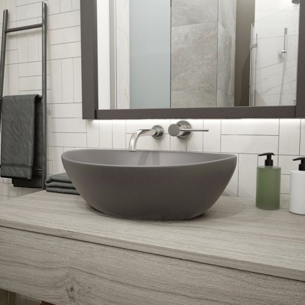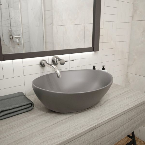 Раковина чаша Maretti EN13NS87-985, серая. Материал: санфарфор. Размер: 41x33,5x14,5. Форма: овальная.Преимущества:- гарантия на изделие – 10 лет;- произведён из санфарфора высшего качества;- антибактериальное водоотталкивающее покрытие чаши;- материал не выцветает со временем и не теряет потребительских свойств;- санфарфор надёжен, устойчив к появлению сколов и царапин.