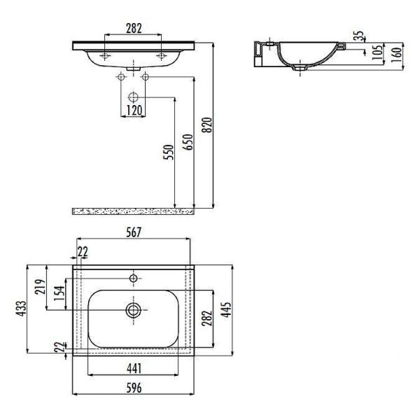 Размер чаши (ШхВхГ): 596x160х445 мм.