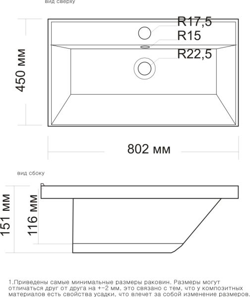 • Отверстия под смеситель: