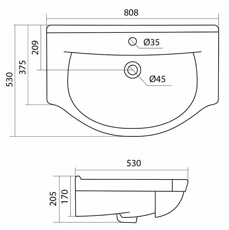 Размер (ШхВхД): 808х205х530 мм.