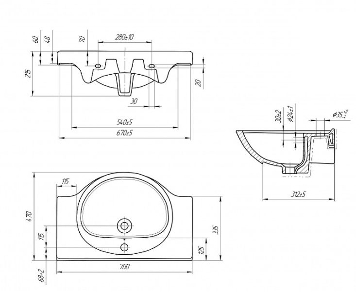 Раковина для мебели Style Line Эрика 70 ЛС-00000142