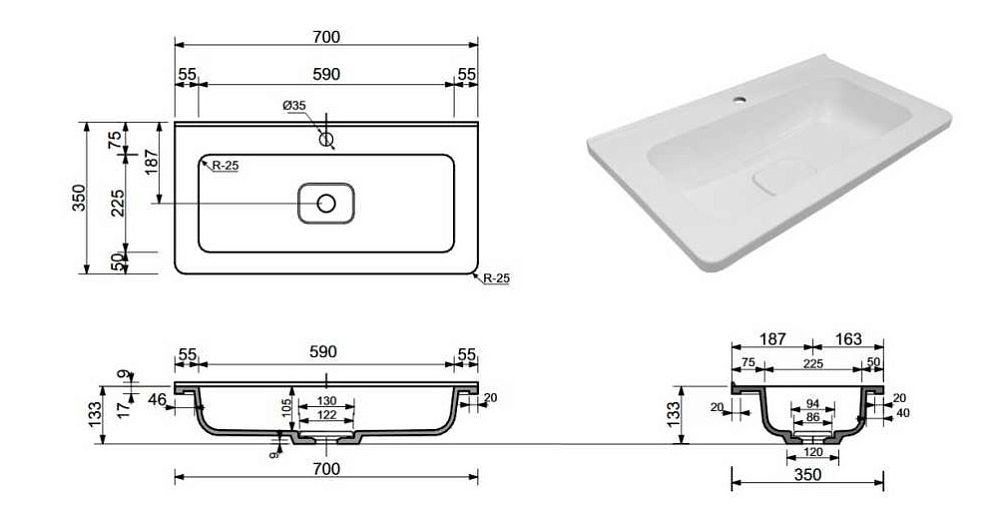 Раковина для мебели Style Line Каре Люкс Мини 70см СС-00002296