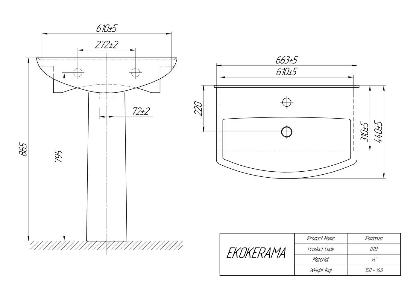 Раковина Ekokerama Romanza 65 см
