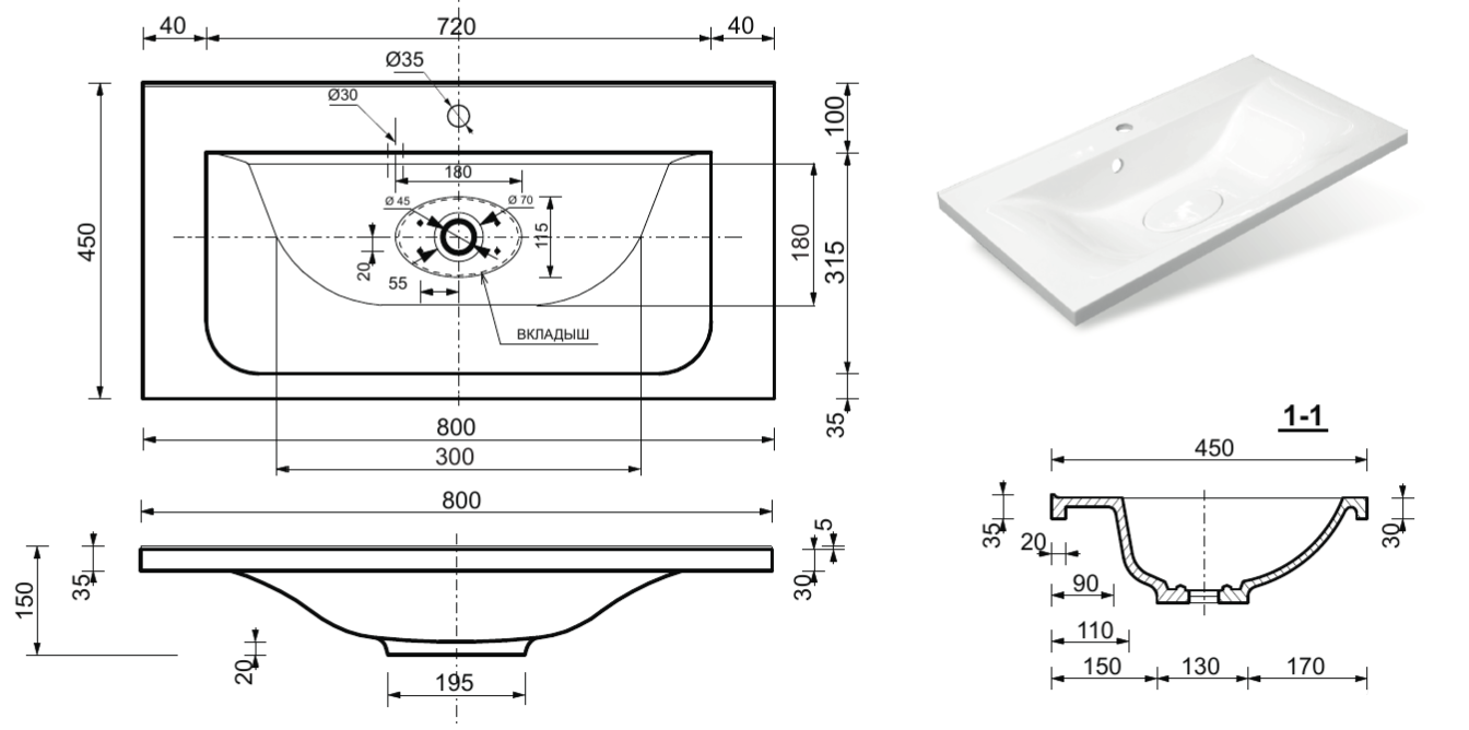 Отверстия под смеситель:1