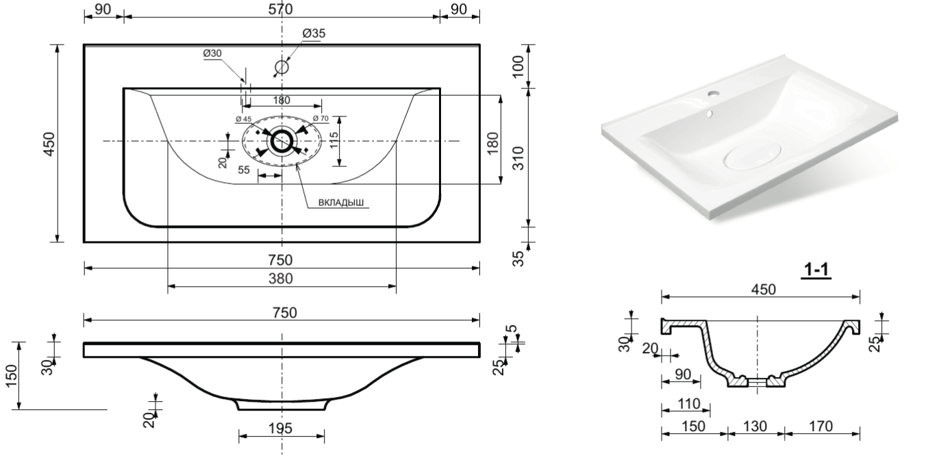Отверстия под смеситель:1