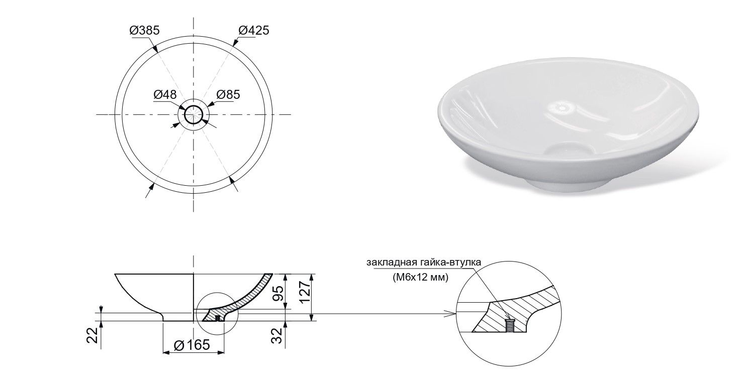 "Накладная" раковина, в форме чаши, с легкостью впишется, практические в любое дизайнерское решение и украсит интерьер Вашей ванной комнаты.