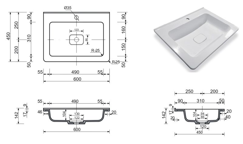 Монтаж:встраиваемая сверху