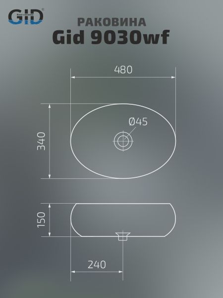 Раковина Gid 9030wf 51187 накладная белая 48x34x15 купить