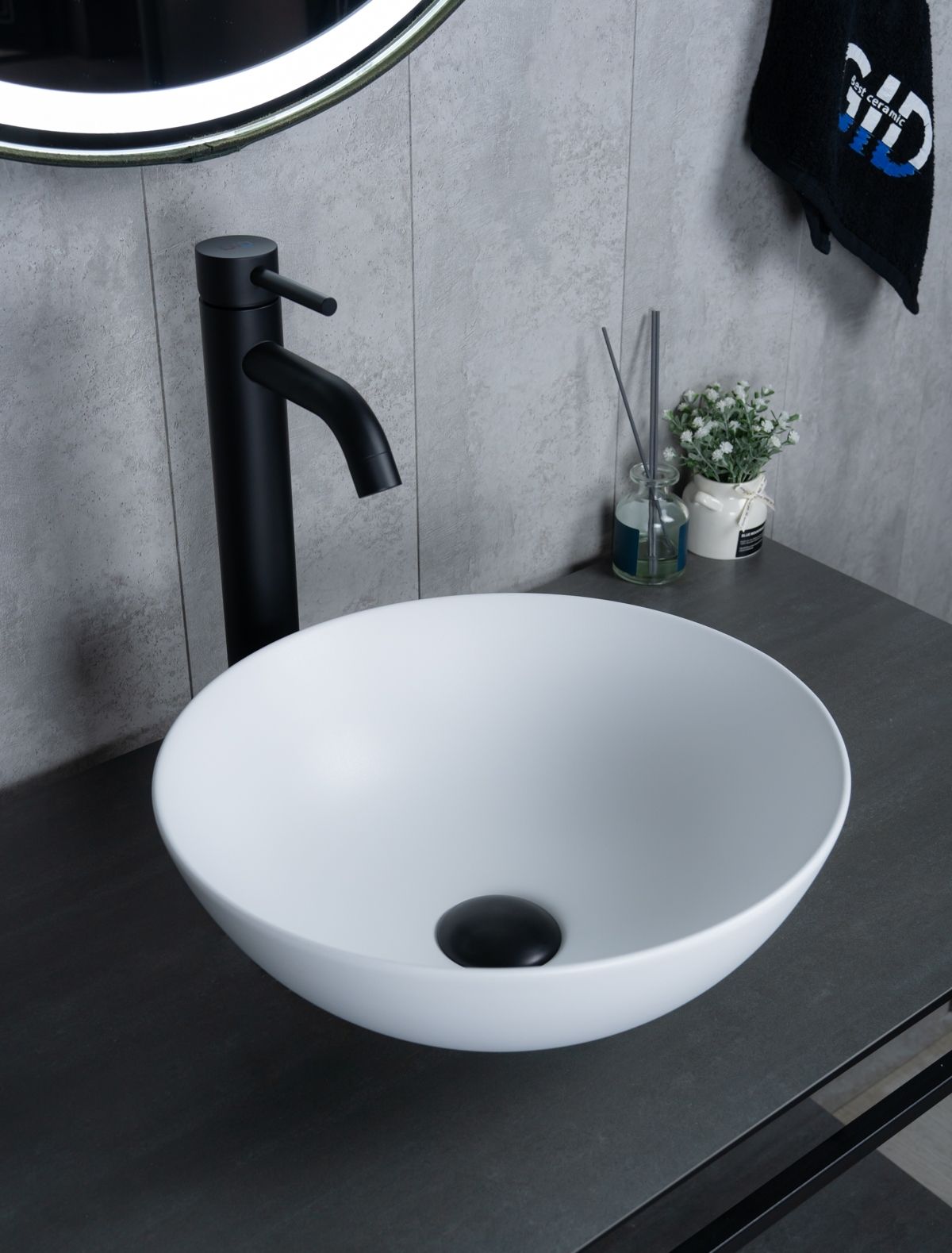 Раковины серии Esfera с круглой чашей — это эталон европейских стандартов и испанского мастерства. Раковина накладная GID 9081WM — это изысканная модель, созданная для тех, кто ценит стиль и функциональность. Ее круглая форма с утонченными очертаниями придает интерьеру ванной комнаты легкость и гармоничность. Благодаря накладному монтажу раковина оптимально использует пространство столешницы, обеспечивая дополнительное место для аксессуаров. Раковина не имеет отверстия под смеситель и переливной системы, что подчеркивает ее минималистичный дизайн.
